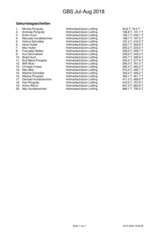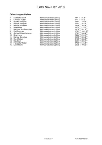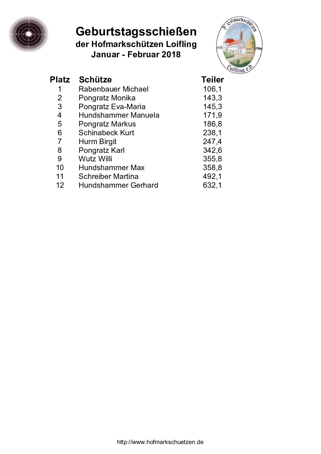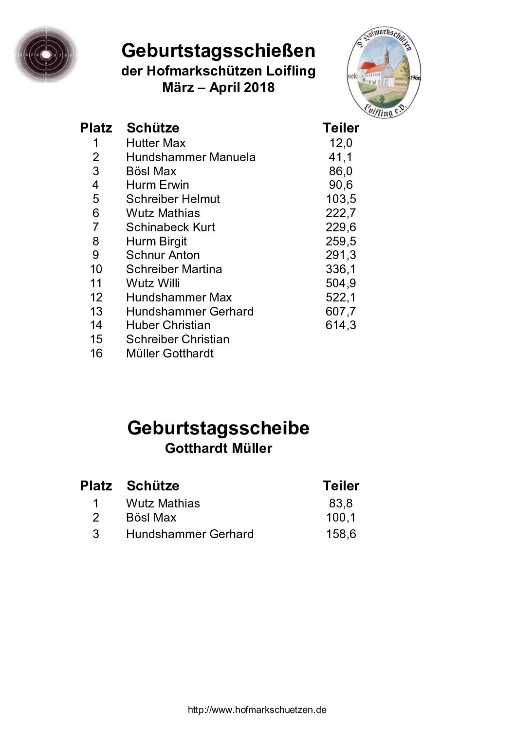 Ergebnisse Geburtstagsschießen 2018