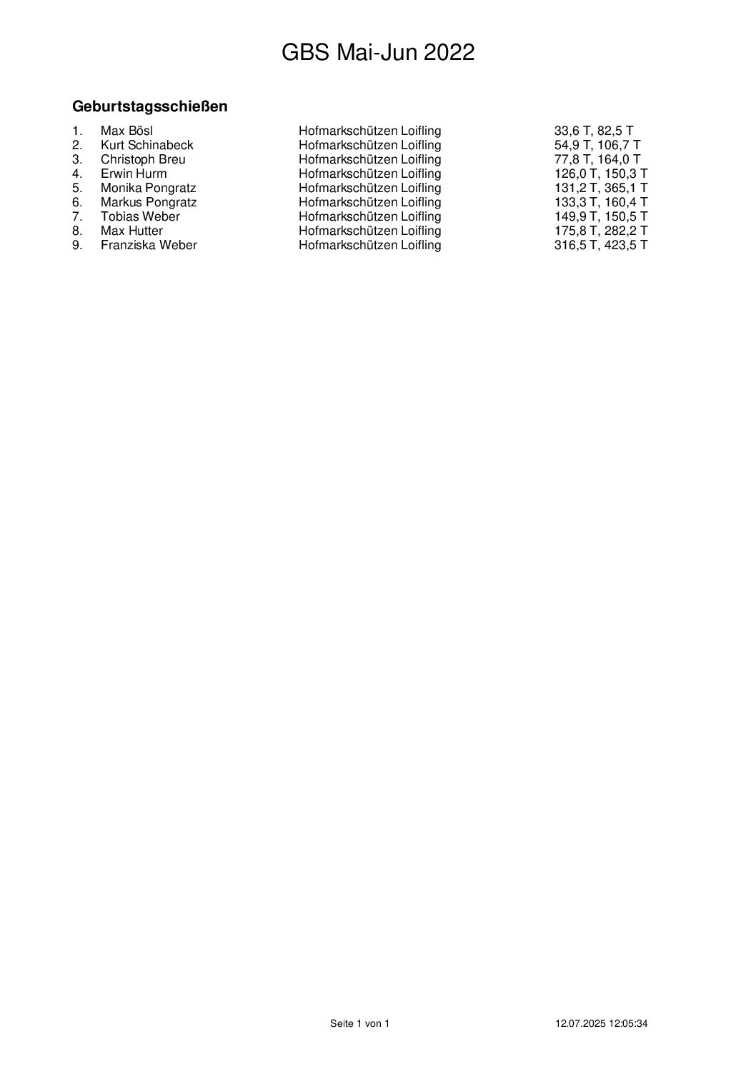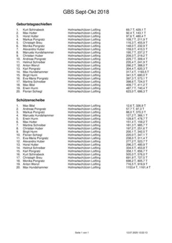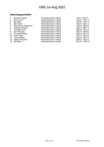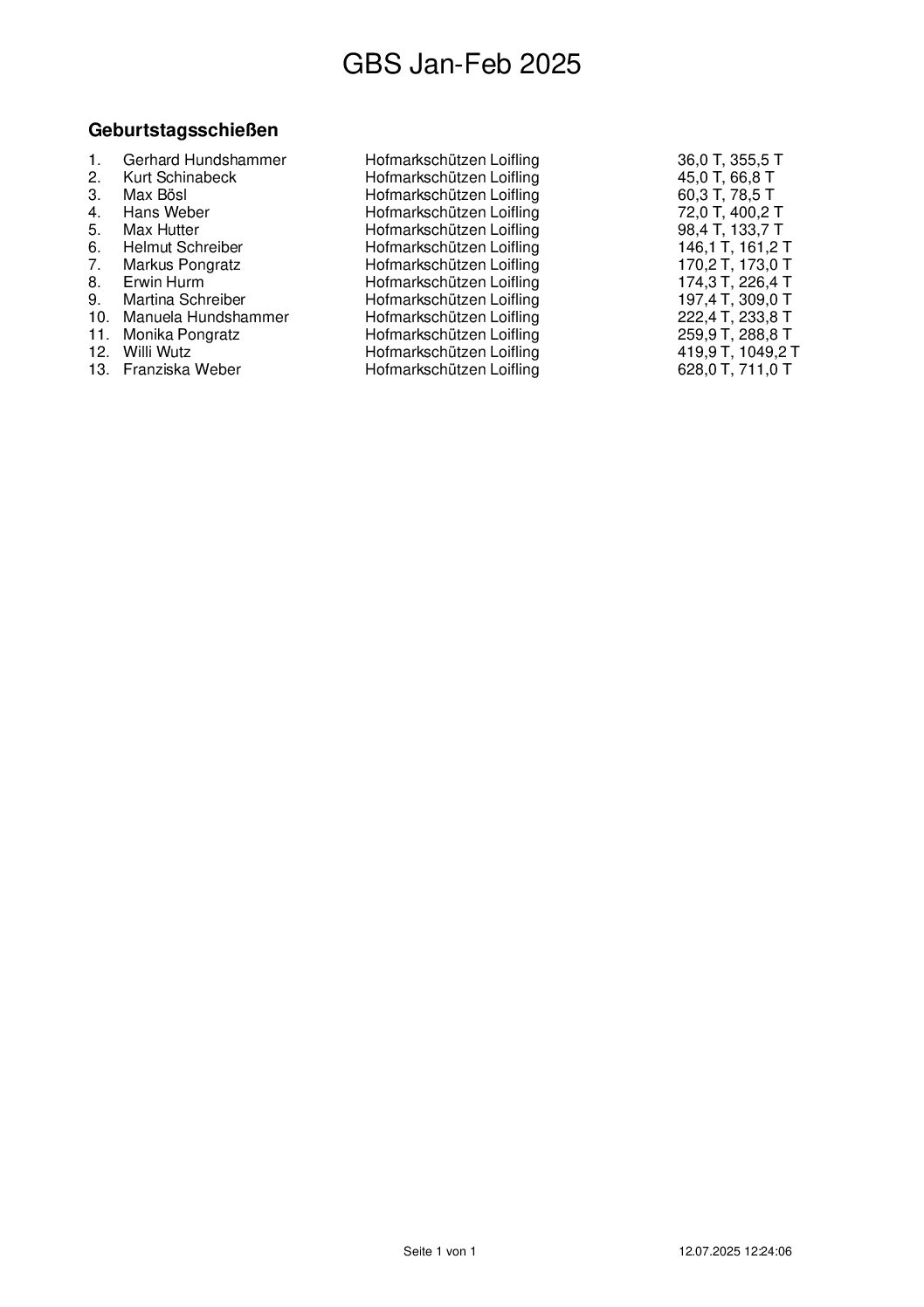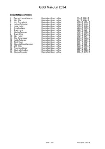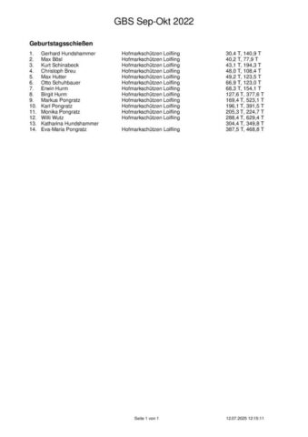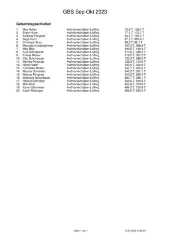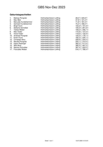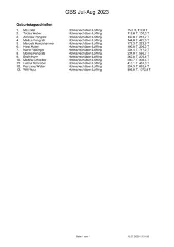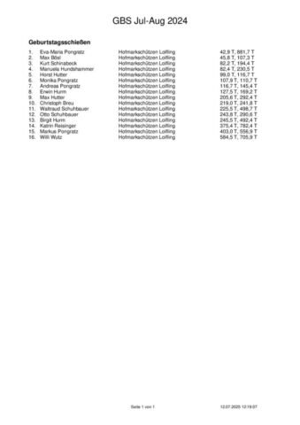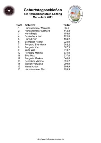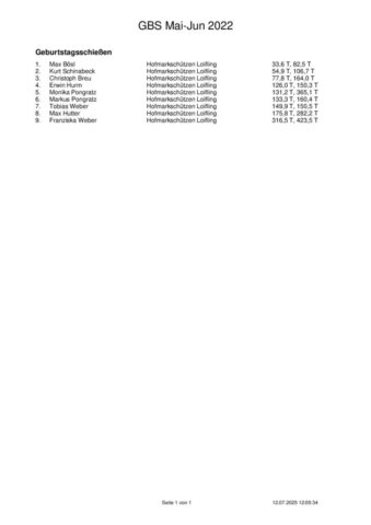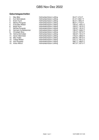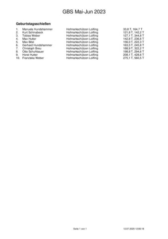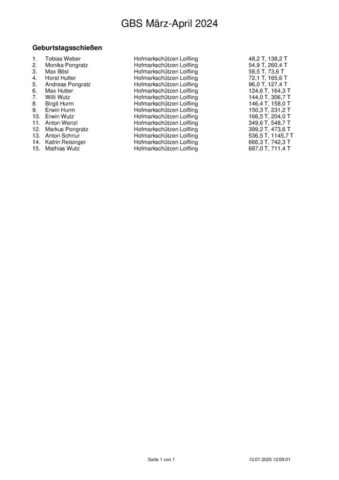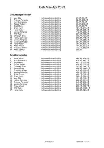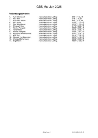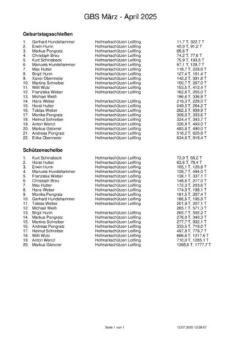 Ergebnisse Geburtstagsschießen 2025