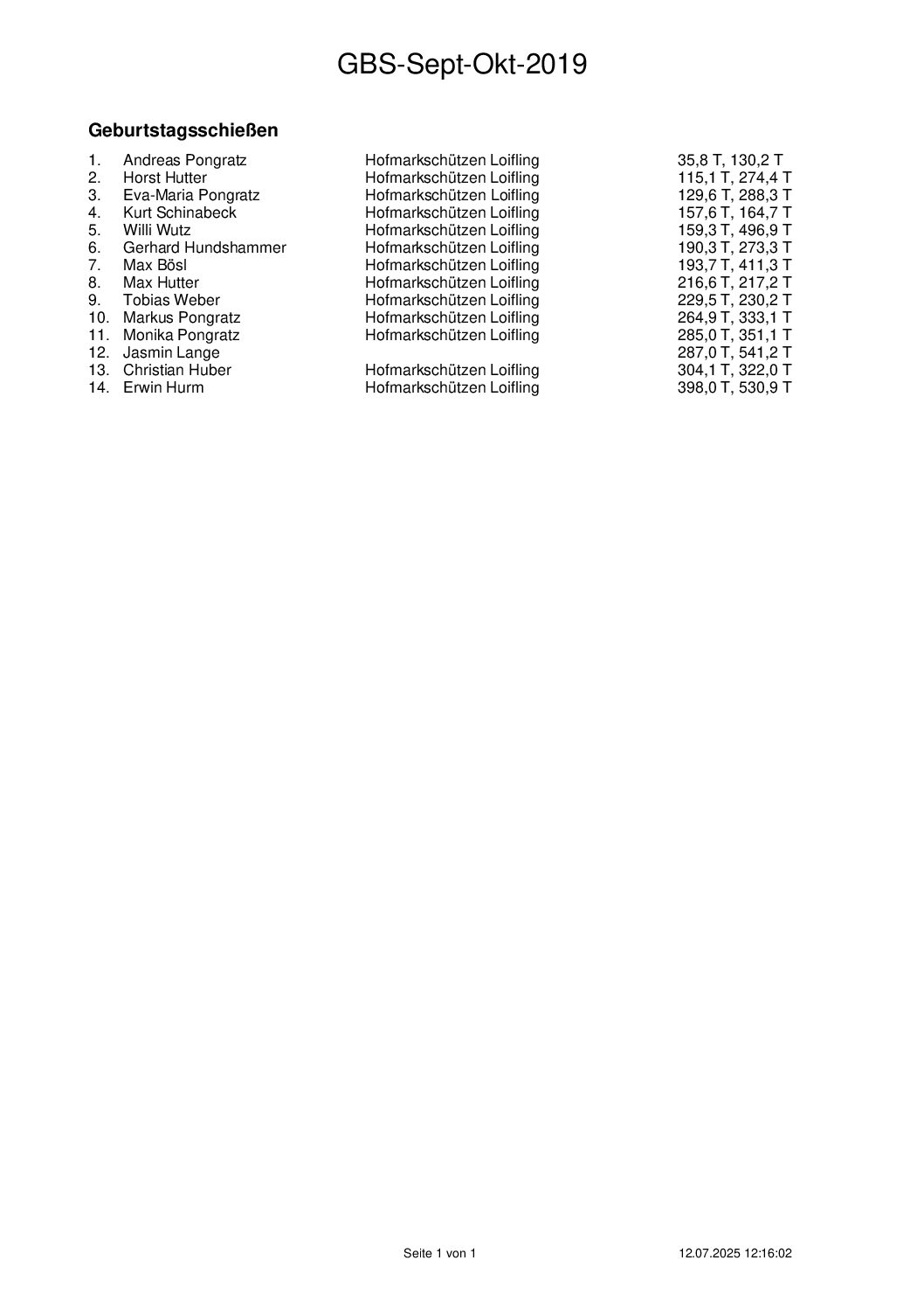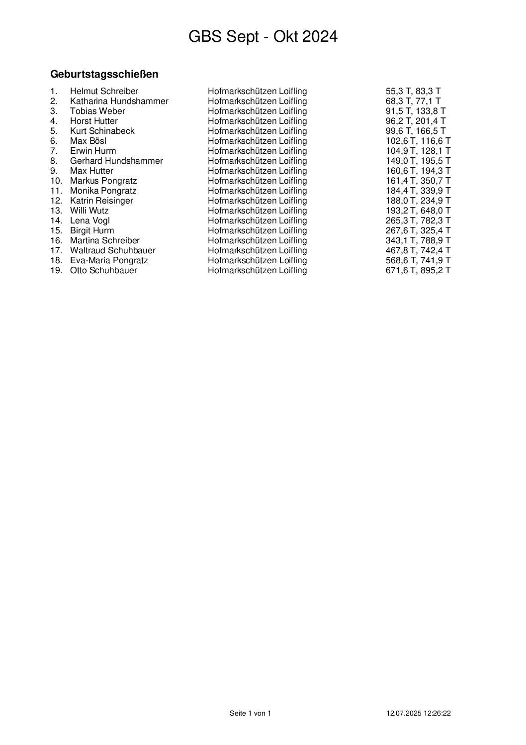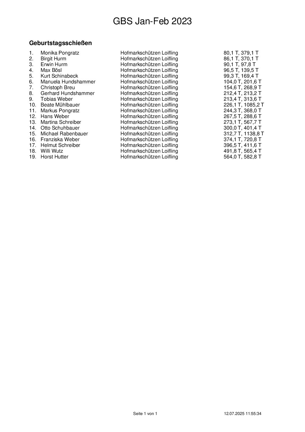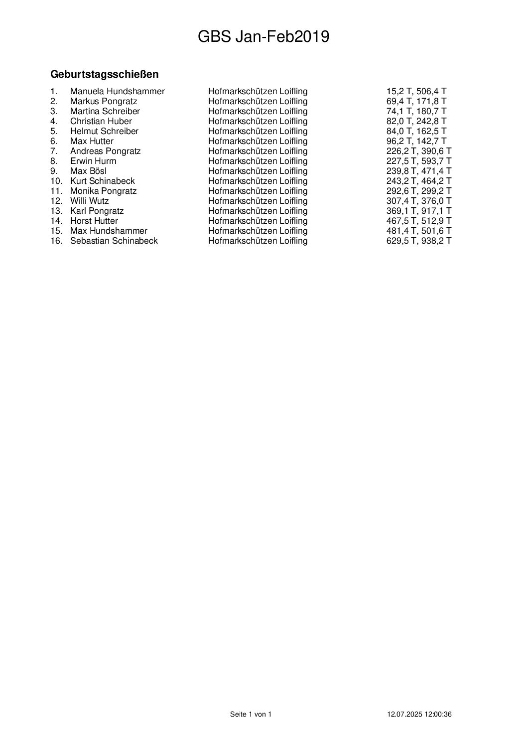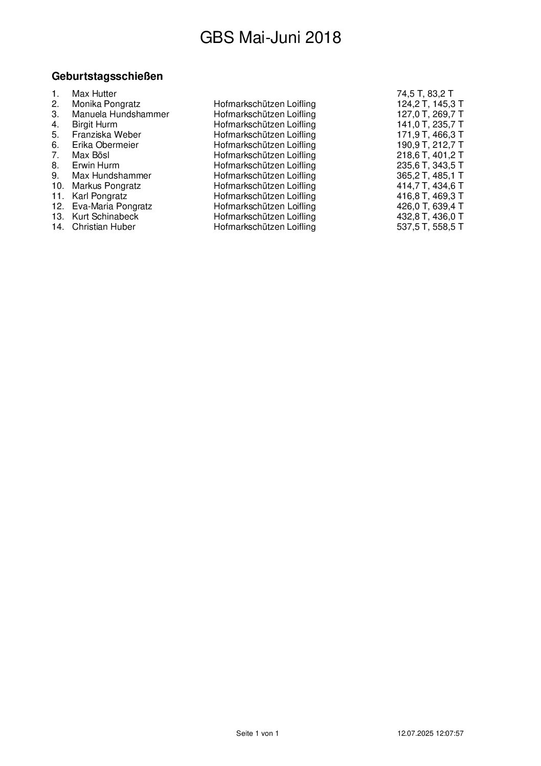 Ergebnisse Geburtstagsschießen 2025
