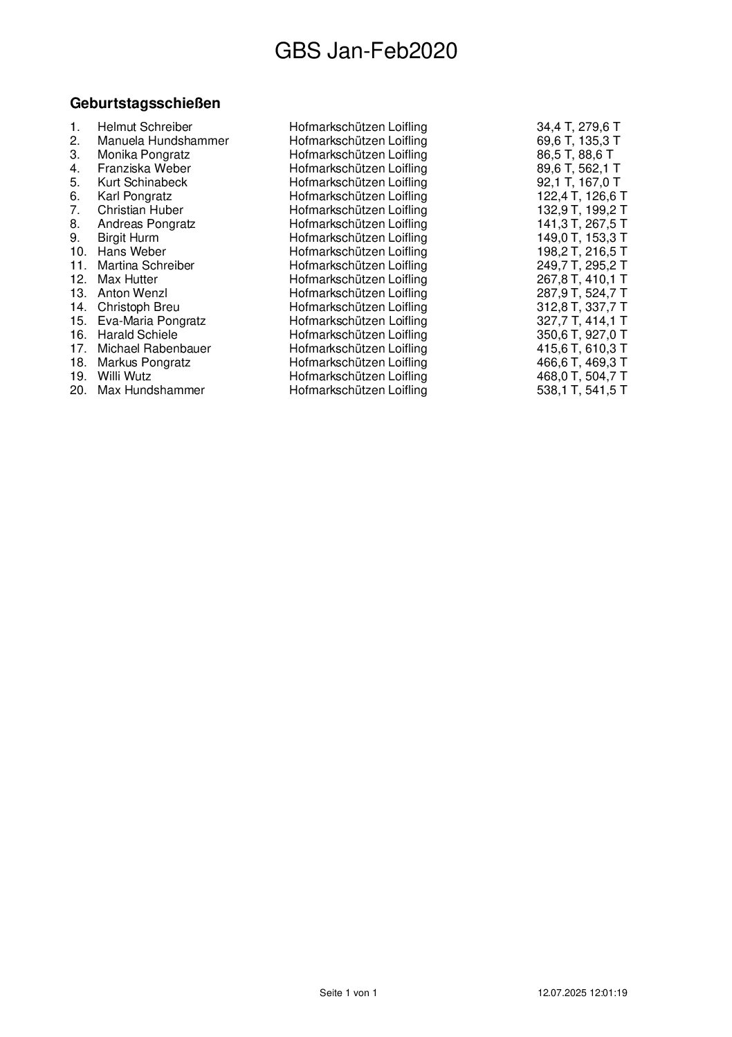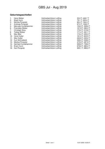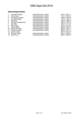 Ergebnisse Geburtstagsschießen 2019